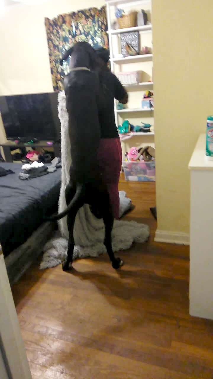 A black dog struggles to run up a slide and climb up jungle gym steps.
