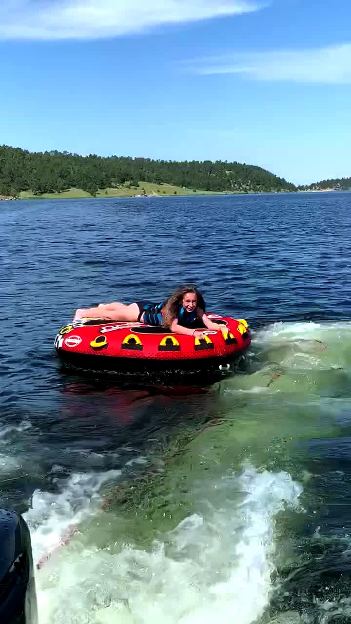 A teen girl jumps forward on an inflatable bounce house outdoors and she lands on her face. Her legs bend up and over behind her and her own feet hit her in the back of the head.