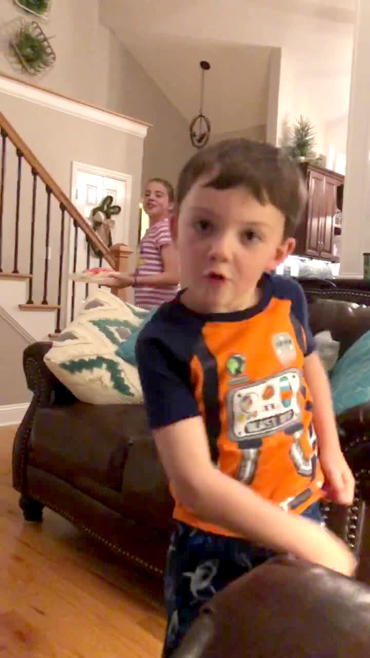 Two women flip over furniture to the rat out from underneath it. When the rat runs out across the yard the women back away quickly and one of them falls to the ground.