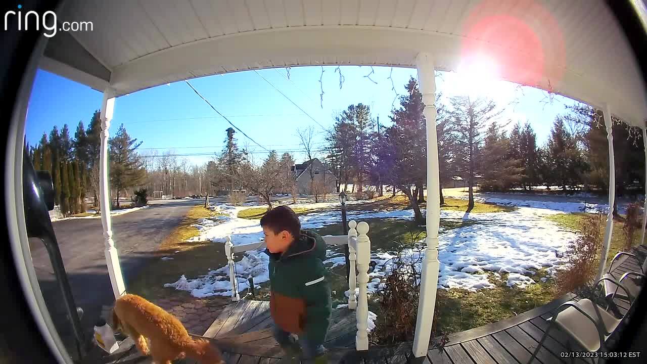 When a dog gets off of his leash, a man chases it up a front porch and takes a young boy down in the process. Security footage.