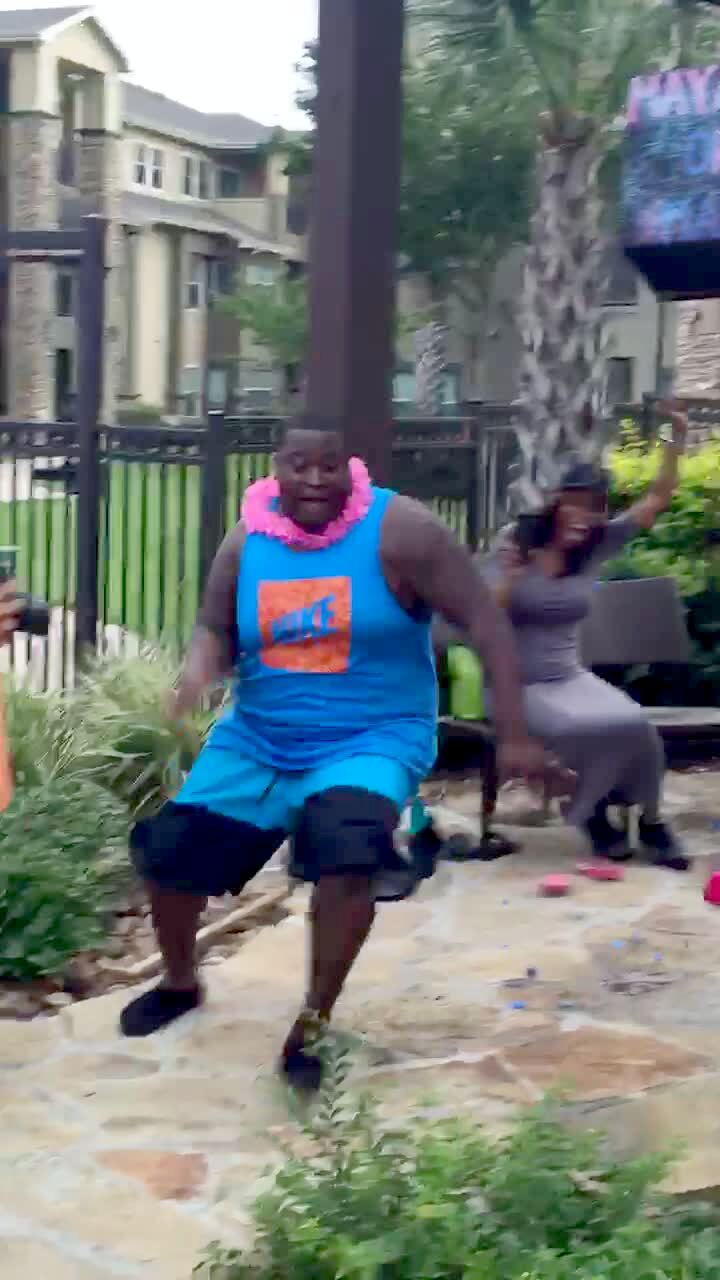A woman dances and spins on a stripper pole. The pole falls over and she lands on top of her dog. Music rights not cleared.