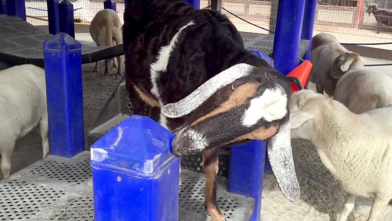 "We Got the Bleat" A goat makes weird noises and pushes his face through a fence.