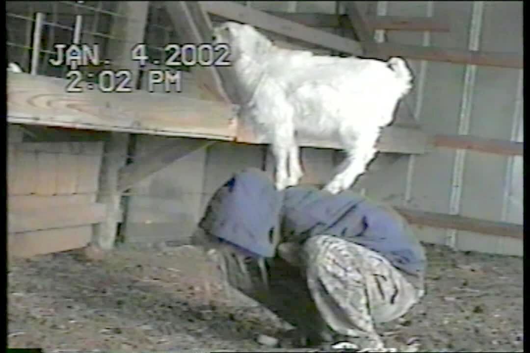 Dog barks off camera - goat moving lips seems to be in perfect sync