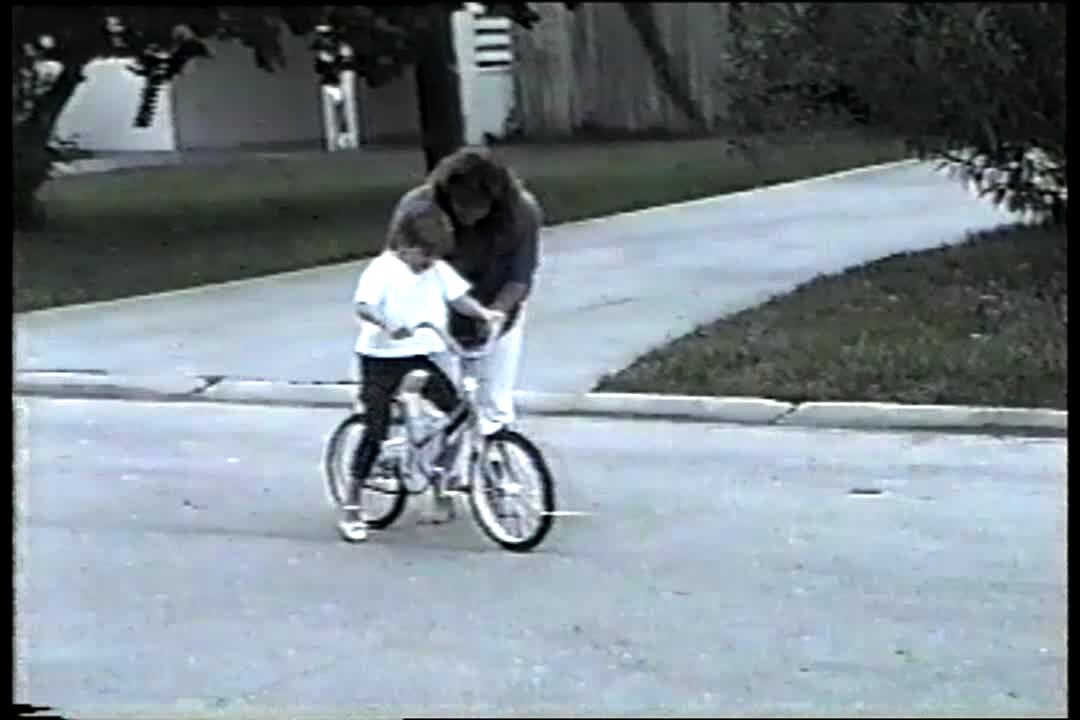 "Tot Can't Find Mail Slot" A woman tries to direct her young daughter to put card in her grandmother's mail slot. The little girl wanders back and forth in the driveway but can't find it. .