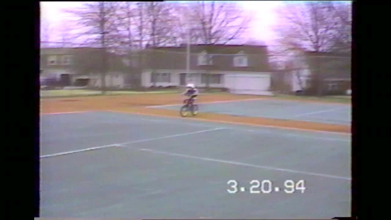 Young boy jumps over a ramp on his bike & falls. Bicycle flies into a fence & gets stuck. With recovery.