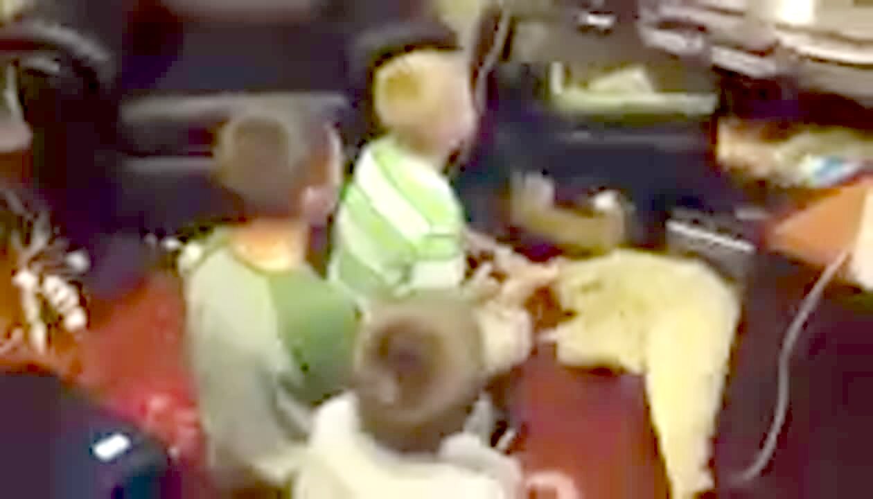 A woman records a video of a flooded street and a car drives past and splashes into her car.