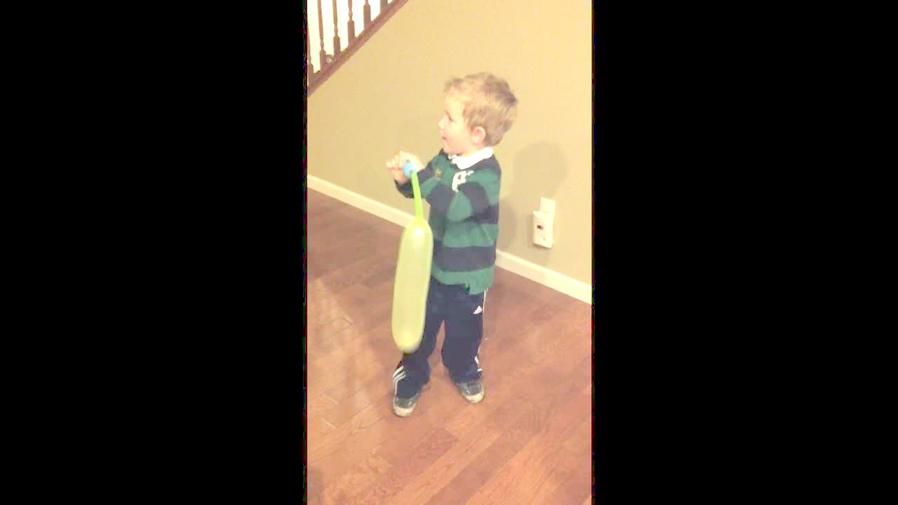 Little boy hits plastic baseball into cameraman