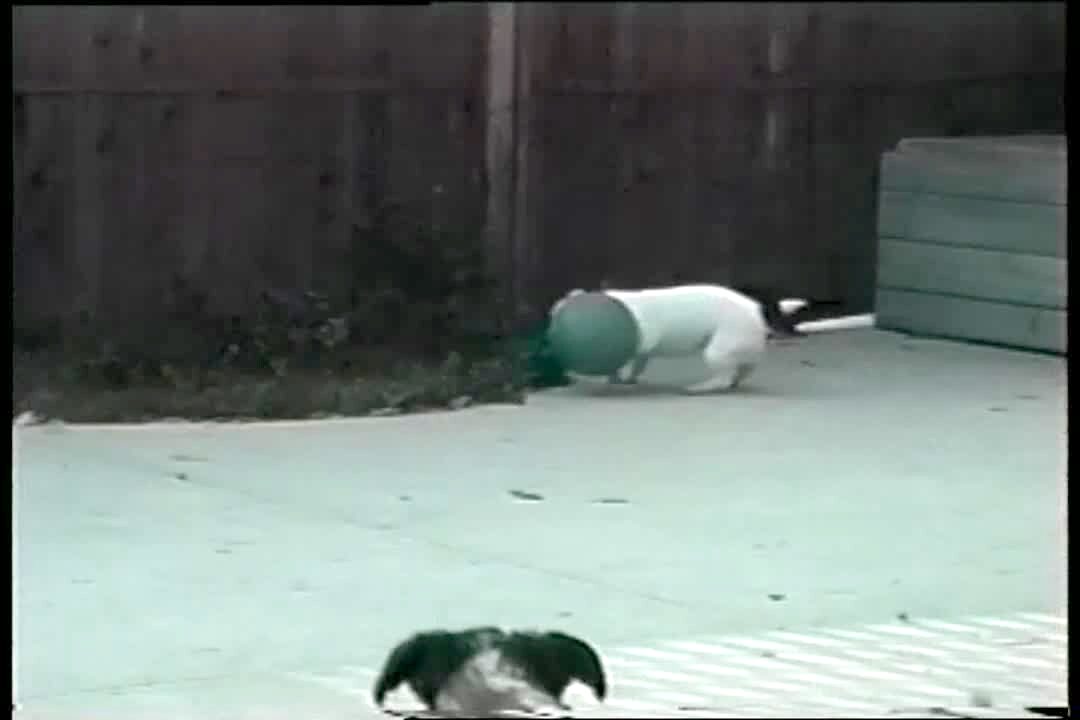A dog runs past a tennis ball and falls on the ground trying to stop and fetch the ball. Vine/Instagram