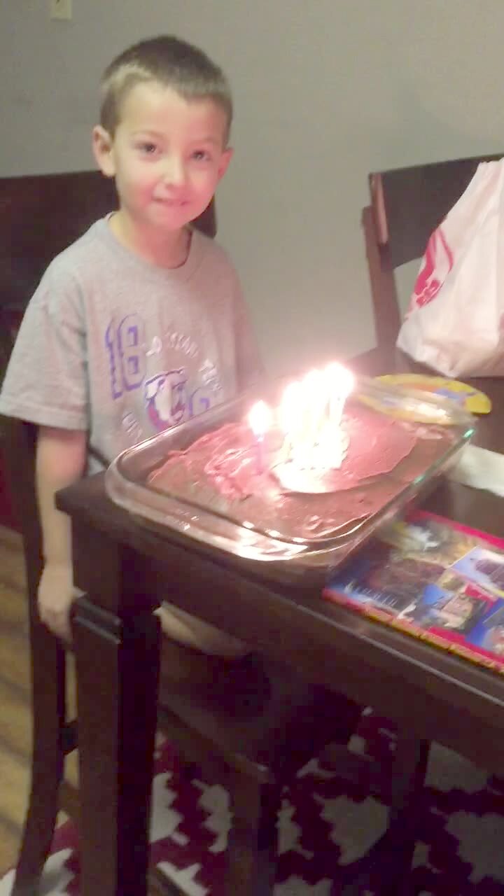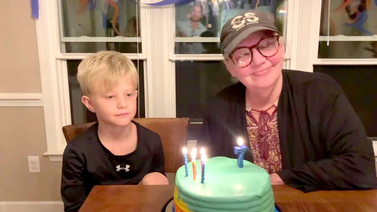 A young boy says that he wishes for a new mom before he blows out his birthday candles in the living room.