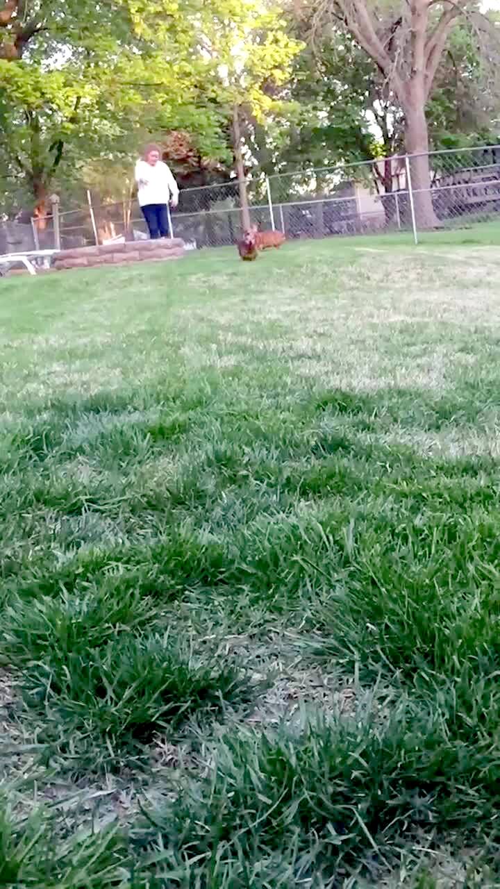 Dog chases remote control with camera attached (P.O.V. of dog chasing)