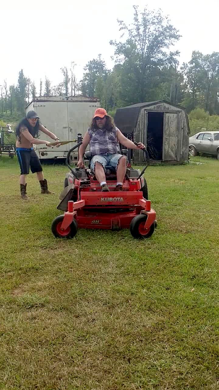 A barbecue explodes in the yard when a man and a woman try to smoke a turkey. Slow-motion.