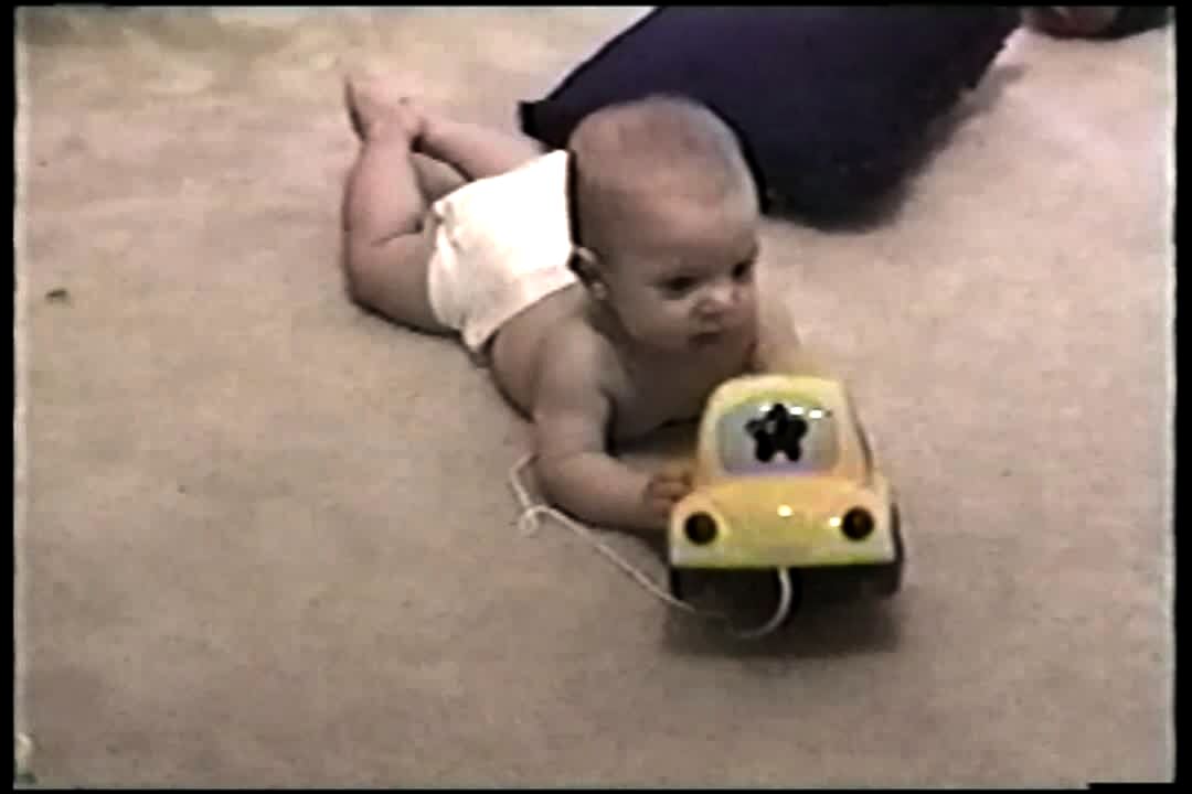 Little boy rides Hot Wheels car into swing set post in backyard & hits his groin / crotch.