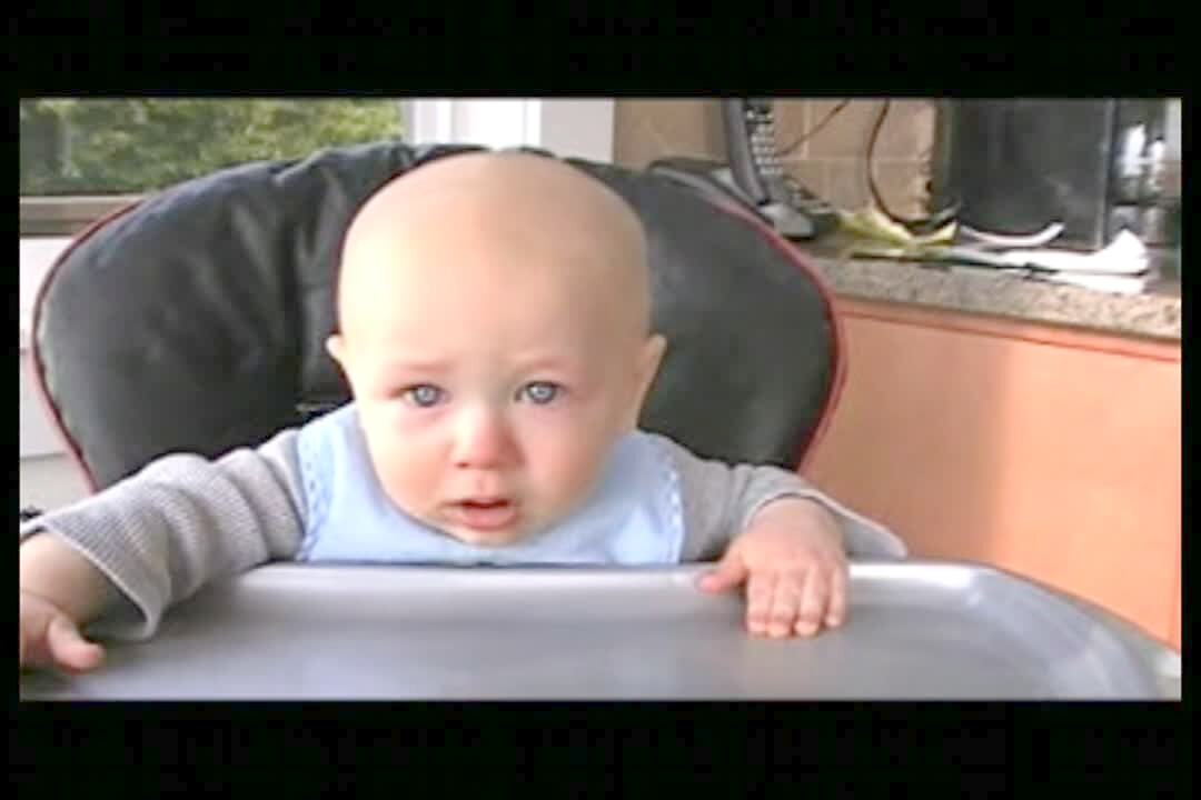 Baby makes horrible, funny face while eating. First foods. Gag.