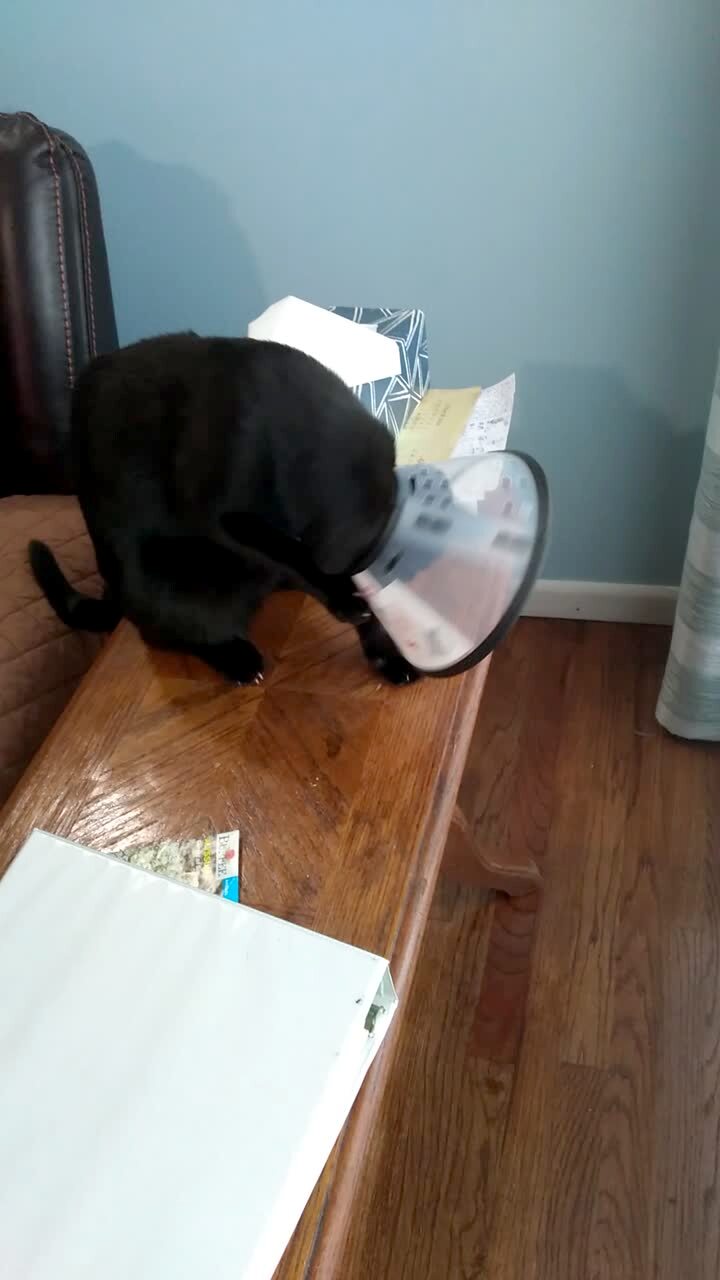 A cat jumps from a tower to a mirror and hits the wall and falls in the living-room.