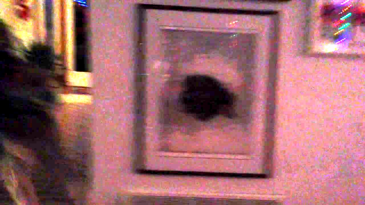 A teen boy sways from side to side in a living room and a dog on a living room couch behind him moves from opposite side to opposite side to look around the boy.