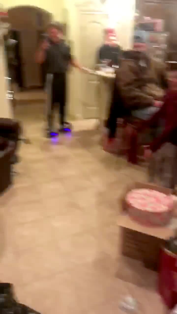 Two women come home from a night out, when one falls into the other and they both land in the shrubs in the front yard. Security footage.