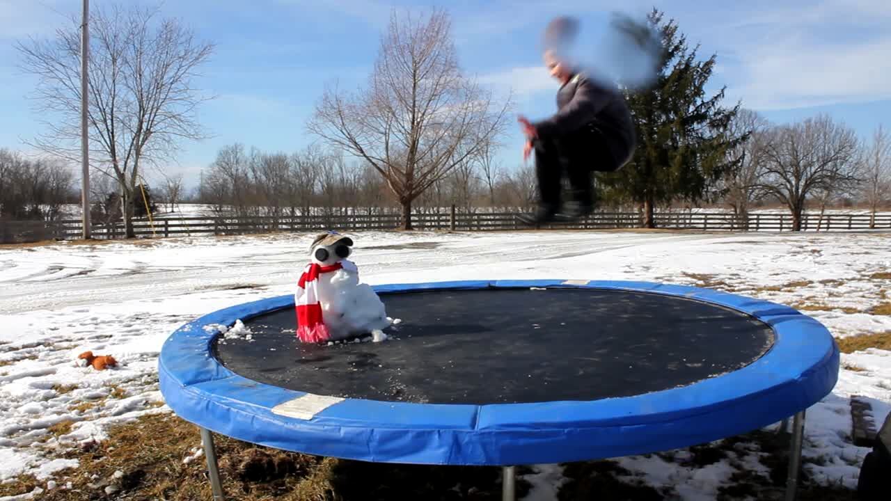 A teen boy attempts to do a flip on a trampoline but falls into the springs and hits his neck and face.