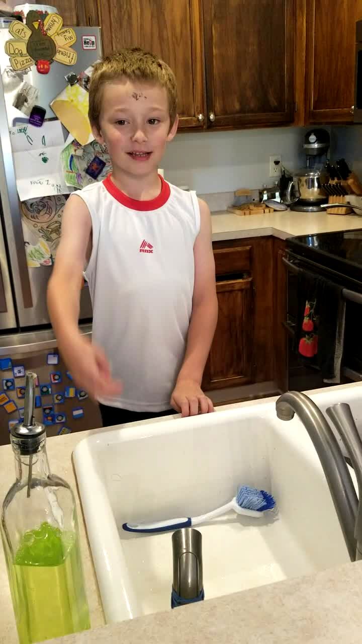 A cat jumps up on the kitchen counter where tin foil is laid out. When its paws touch the foil it bounces up into the air landing on the opposite counter. Security footage.
