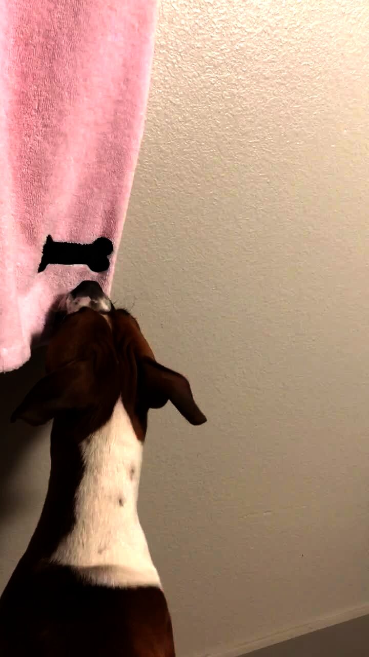 A cocker spaniel dog digs against a plastic bin of dog food at home, and a man points out that her food bowl is already full. She continues to scratch the container, then the man points out her food bowl again, and she eats out of it.