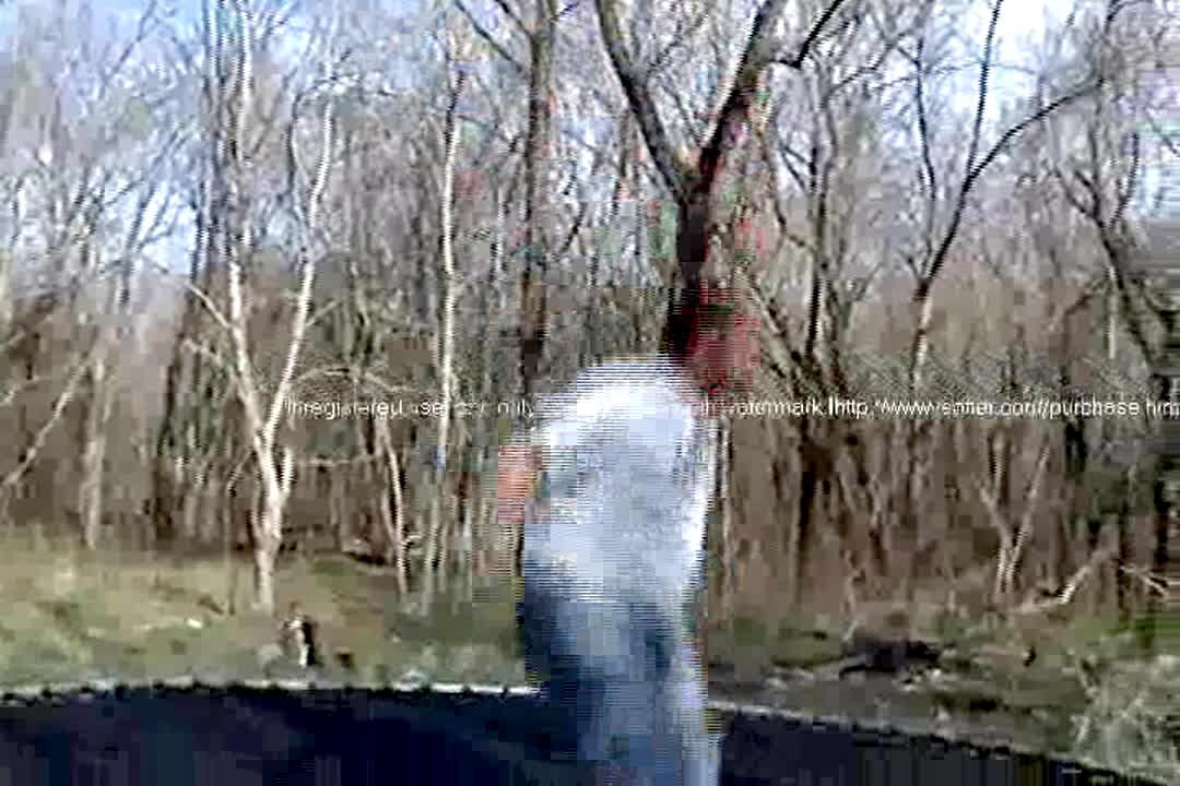 A man jumps on a trampoline and breaks it, falling through the bottom.