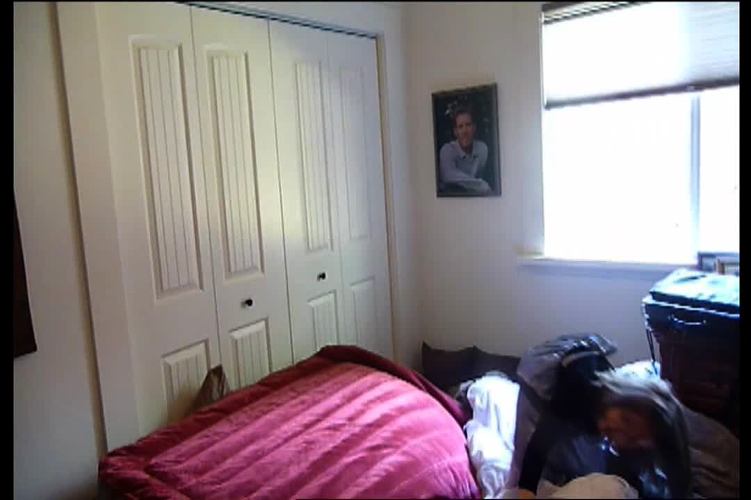 A girl holds her baby brother's hands indoors and sings "Paddycake" to him while a chihuahua dog mounts a humps a pillow in the background.