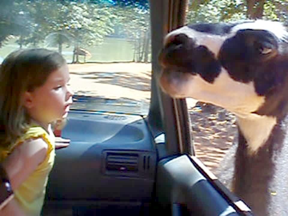 A woman lies on a hammock in the backyard, and a Great Dane dog crawls onto the hammock with her. The dog steps over her, then jumps off and the hammock falls to the ground.