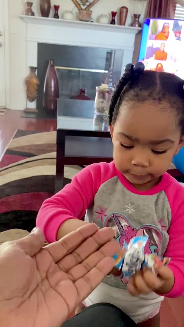 A young girl blows out her younger sister's birthday candles. One of the girls yells "IT'S NOT YOUR BIRTHDAY!"