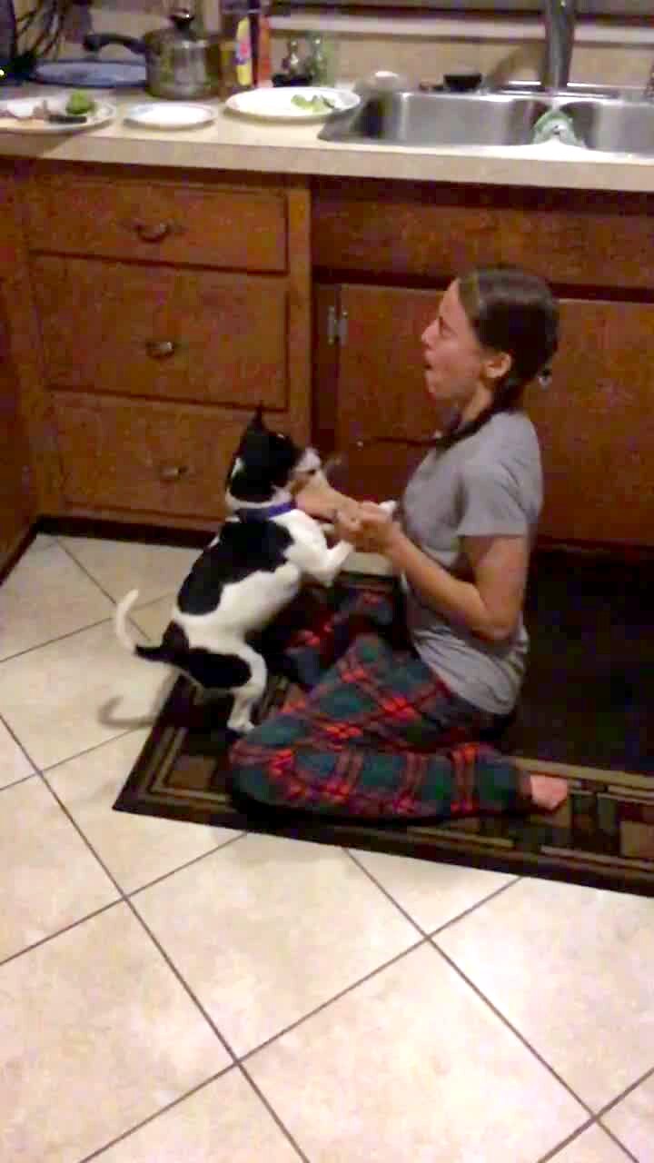 Teen boy jumps on a trampoline. He jumps off and lands hard on the ground. Short tail. See W108830/ 641579A for additional tails.