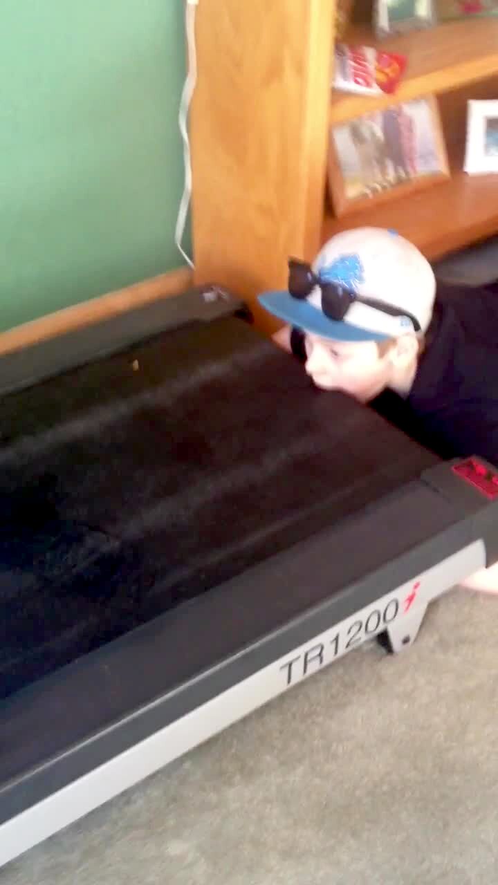 Four-year-old boy skateboarding, falls and then the board rolls into his crotch / groin / balls.