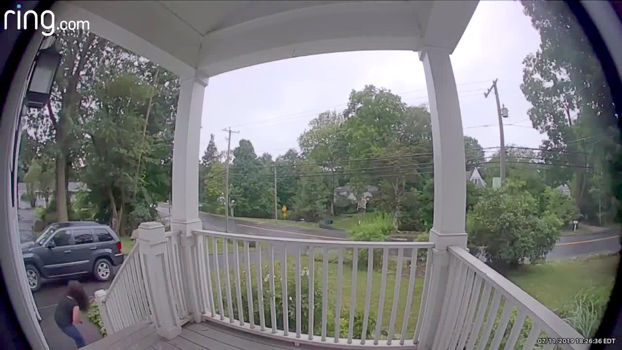 A woman does the ball drop beer challenge in the driveway. She catches the can and drinks the beer. A man goes after her and he catches the drink too. A senior woman goes next and the can bounces up and hits her in the face.