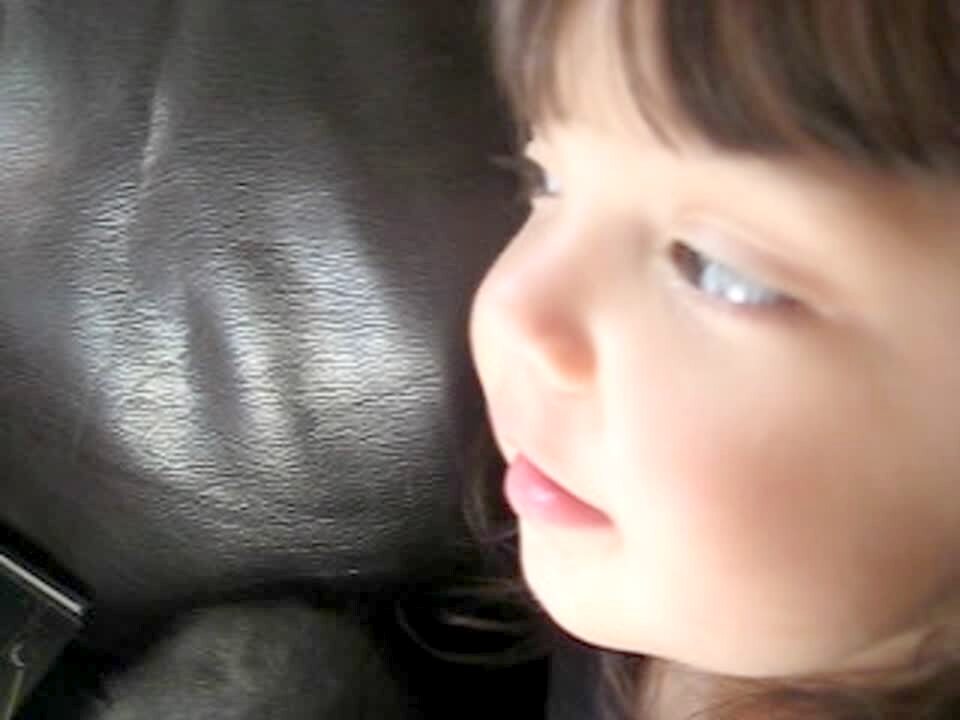 Tot girl repeats / says "banana" by sticking her tongue in and out. Cute.