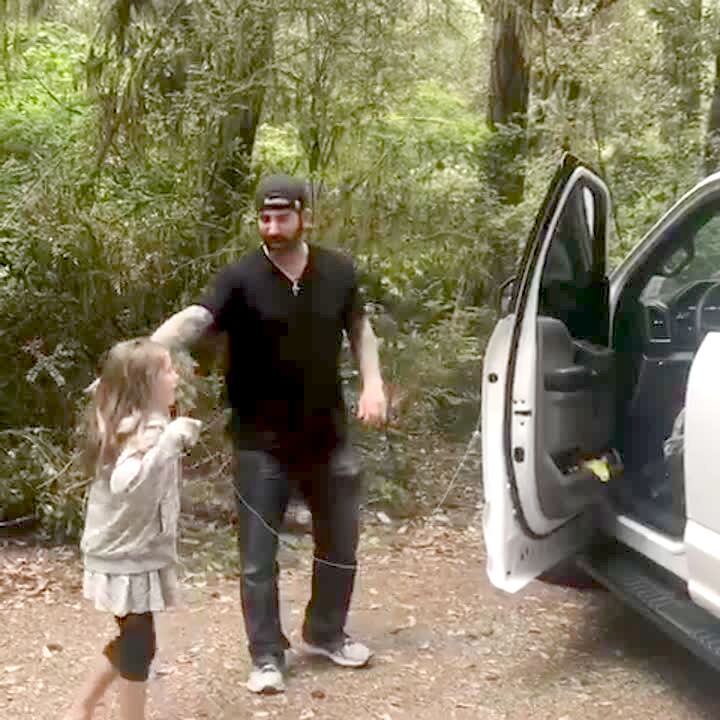 As a dad puts dishes in the dishwasher, his twin toddler daughters take them out, one by one. He thanks them for helping.