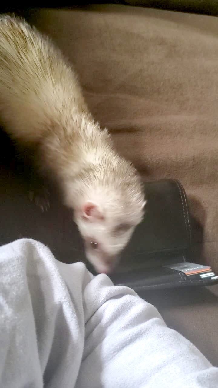 A man does the computer mouse in the house prank on a woman in the foyer. He opens the front door and tells the woman to pick up the cup so he can sweep the mouse out of the house. The woman says she's scared the mouse will run at her and notices the camera. He says the camera is to show them get the mouse and tells her to pick up the cup. She flips the cup and runs away. The family laughs when they see it's a computer mouse.