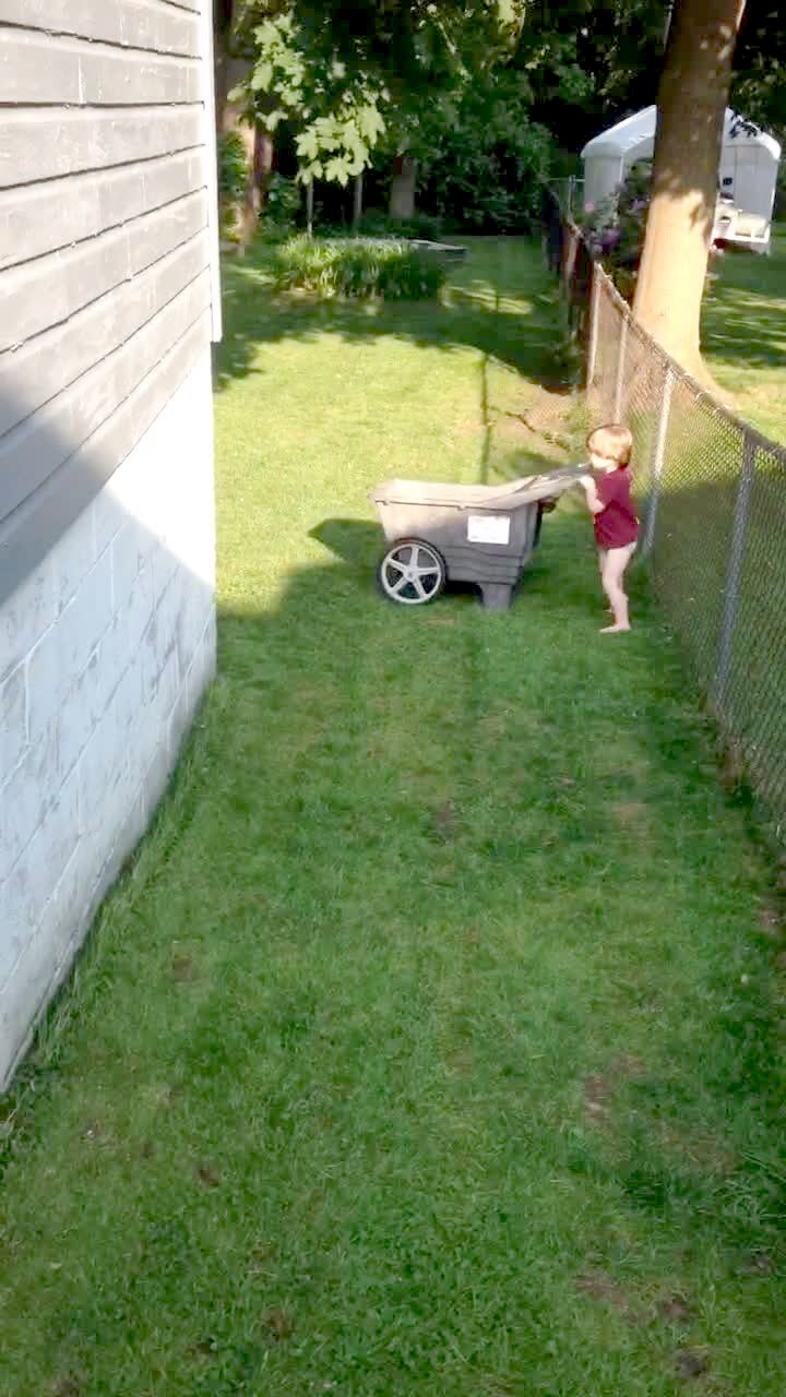 Tot girl is crying, says the dog bit her. Camera pans to the "dog" and it's a lawn ornament carrying a lantern.