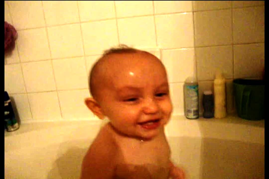 Little girl crashes while sledding and pops back up with snow on her face, screaming.