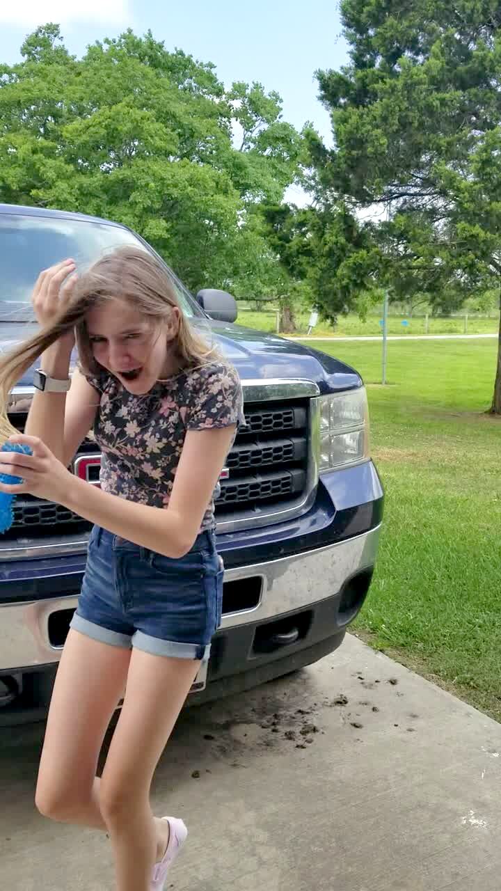 Teen girls laugh in a kitchen after starting a fire. A girl pours water on it and the fire grows, causing them all to scream.