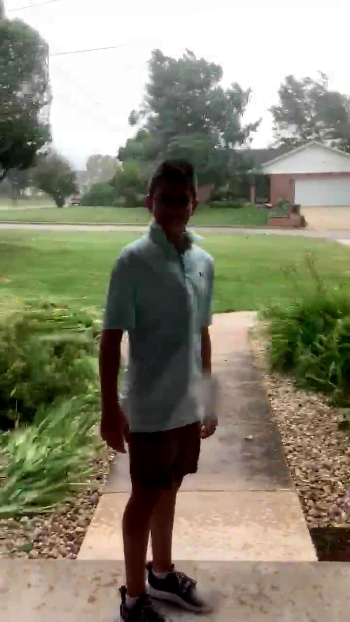 Teen boy blows out the candles on his birthday cake, a big flame shoots out.