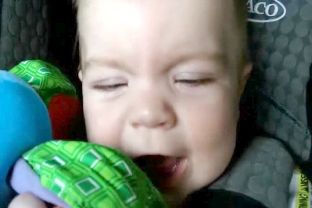 Baby in car. Shot gets dark when they drive through tunnel. Baby's eyes widen. Cute. Too short.