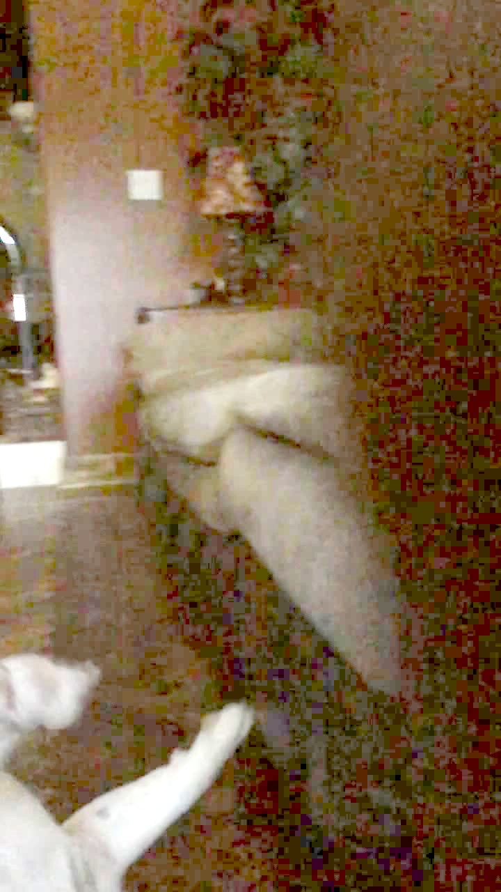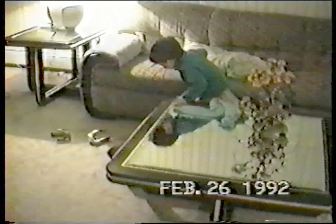 Tot boy runs around living room with a trail of toilet paper sticking to his butt