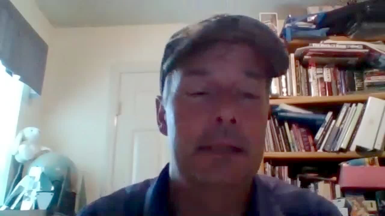 A man drops a large trophy for the Armed Forces Hockey tournament during a video conference and the other man participating gasp and cringe. Zoom.