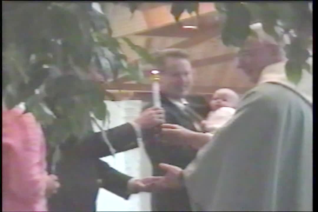 Baby boy pees on his dad during Baptism / Christening. Church.