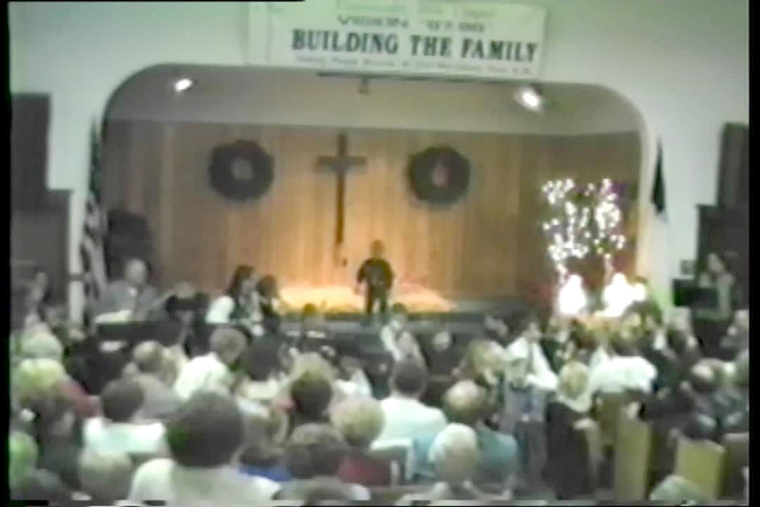A preacher man talks to several people at the front of a church. A young boy walks up to him at the front of the church and asks where the bathroom is. A woman leads the boy away as a crowd of people laugh.