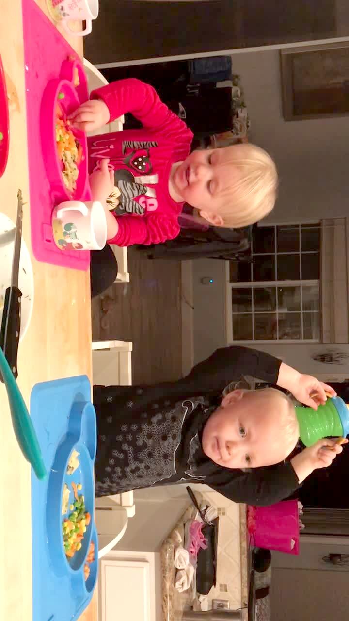 "Feet Kissin' Kids" - At 0:30, a tot boy drops his sippy cup on his twin sister's foot in the living room and she gets hurt, so he kisses it to make it better. Then he bites his own foot and makes his sister kiss it to make it better.