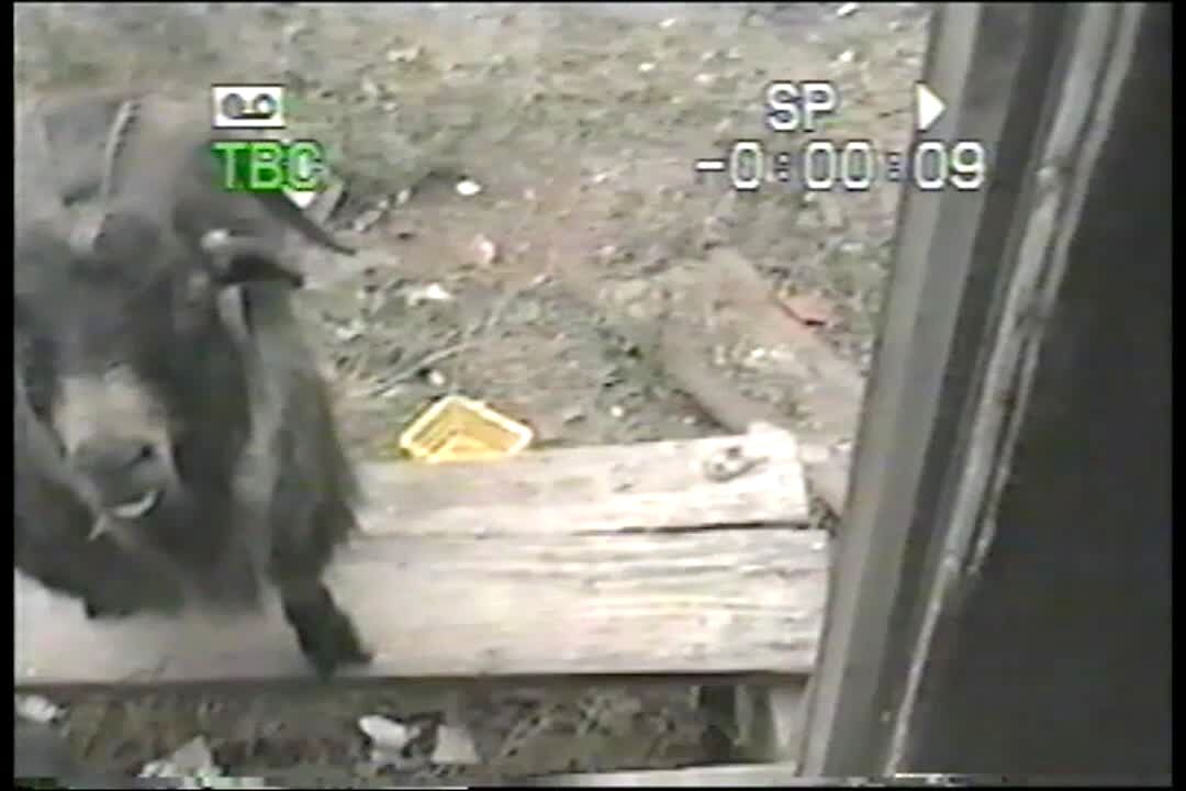 A man holds a goat outdoors and yells, causing the goat to mimic his yelling by bleating. Vine/Instagram.