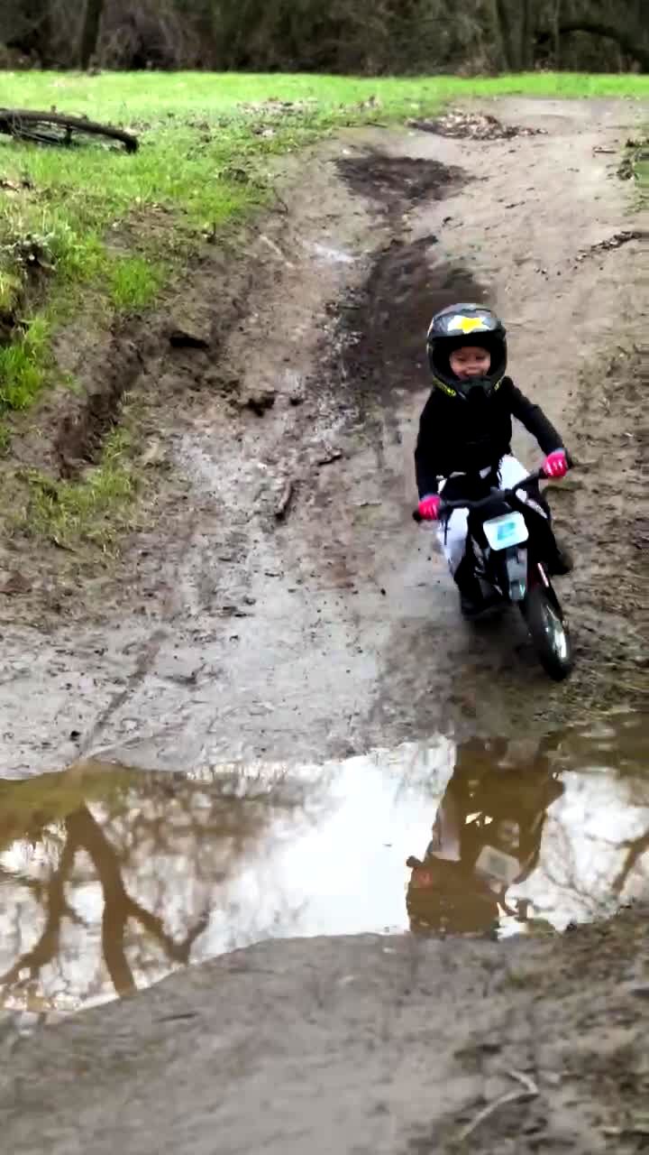 A man drives an ATV with a woman on the back through a mud puddle, and then he tips back and the woman falls in the mud. Featured talent cleared only (man and the woman on the ATV in the mud)