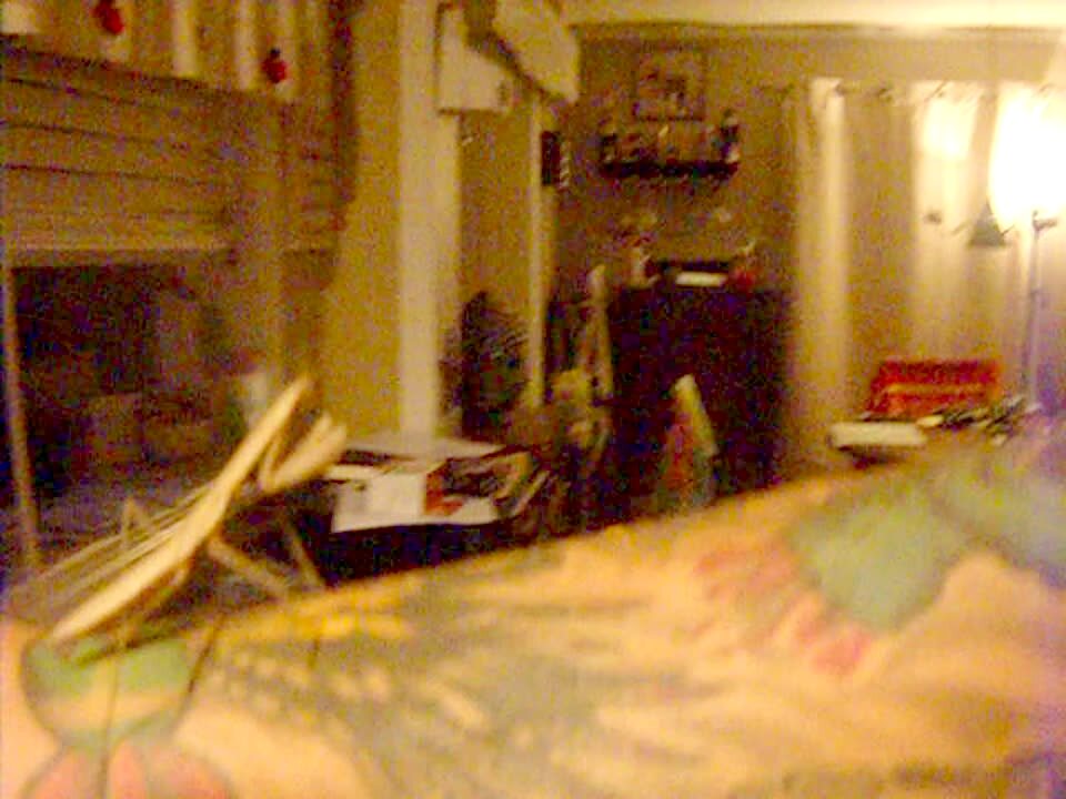 A woman and a young boy walk into the living room and the boy picks up a book and a bat flies out from under it. They both scream as the bat flies around and they run out of the room.