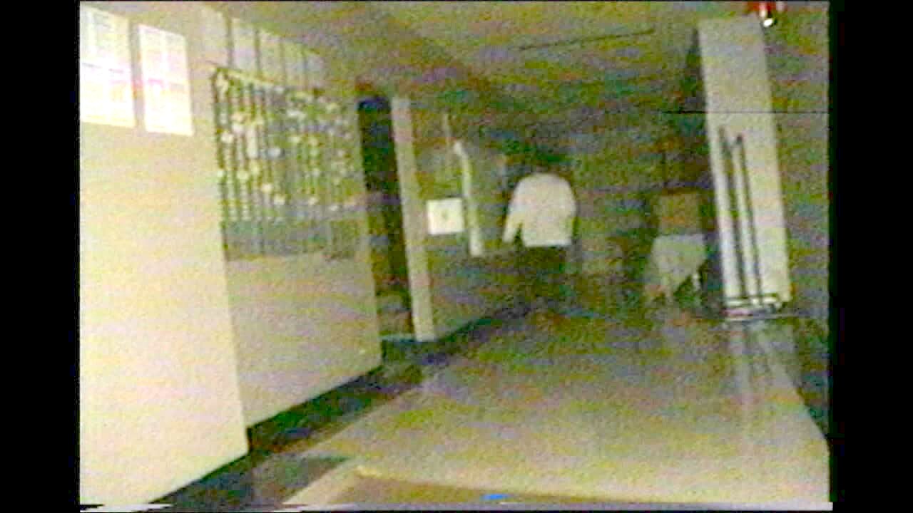 While she tires to steal her lambs' food in a barn, a sheep gets stuck in between the fence posts and tries to wiggle her way out.