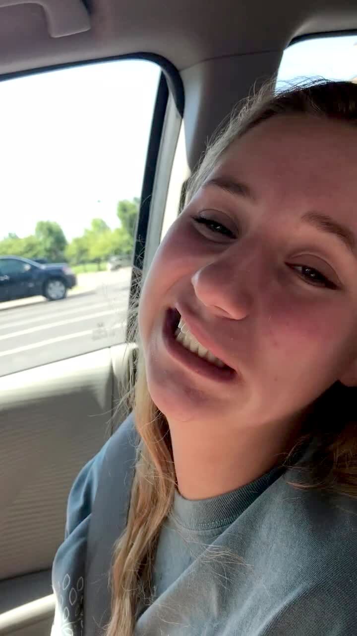 Teen girl in car had her wisdom teeth removed, she's disoriented from the drugs and talks funny. She loved the doctors, her parents, & everyone. She wants a milkshake, & to take her pants off. Very long for edit.