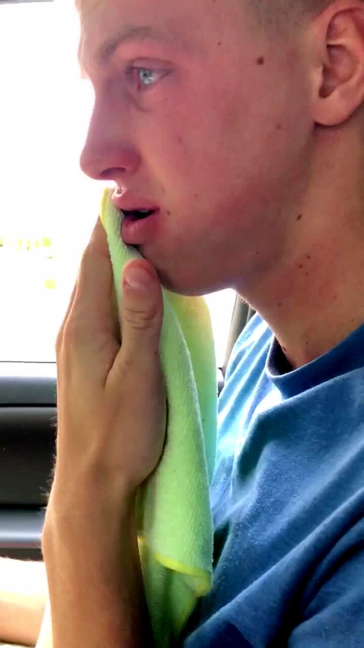 Teen boy cries and complains on ride home from getting wisdom teeth pulled. Says that he's a baby for crying, that he's sick and tired of people telling him what to do, that he doesn't do drugs, etc. (long for edit)