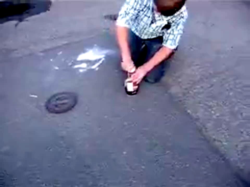 Teen throws plastic soda bottle on street - it explodes and bounces into his chest.